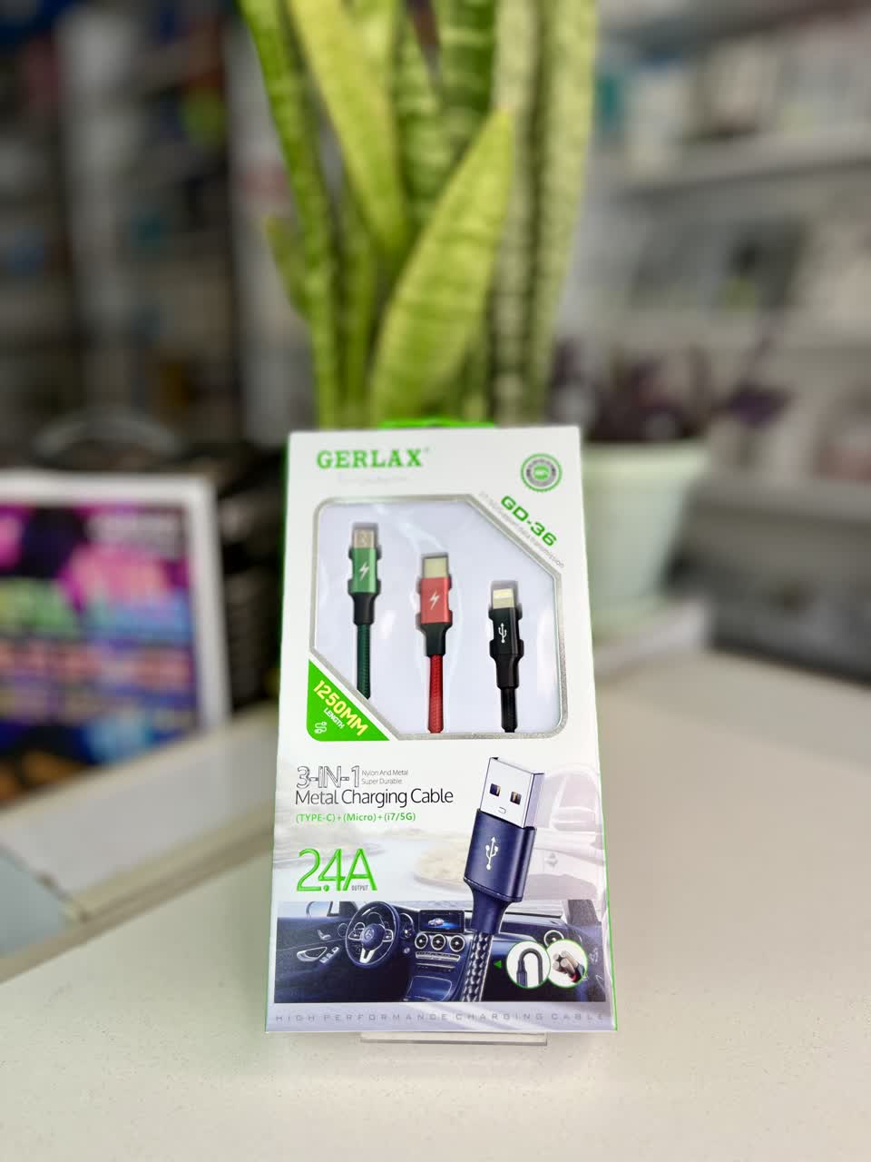 کابل شارژ جرلکس Type-C+Micro-USB+Lightning مدل GERLAX GD-36 3in1